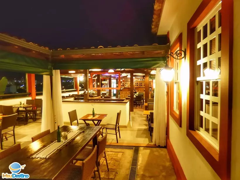 Já o ambiente interno possui mesas maiores, algumas com cadeiras acolchoadas, mesas em ambientes mais reservados e vista panorâmica para a cidade. Há ainda um espaço ao fundo do restaurante que geralmente recebe eventos particulares. O local costuma receber confraternizações e até casamentos, como mostra a página do Facebook do restaurante.