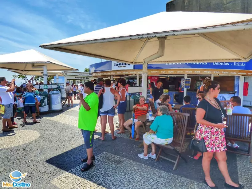 No Morro da Urca há 3 bares: O Bar Abençoado possui drinks e um famoso escondidinho além de um cardápio variado. O Rei do Mate possui várias opções de lanches e o pão de queijo que os mineirim adora. A República da Fruta vende sorvetes e saladas de frutas. No Pão de Açúcar há uma lanchonete com lanches rápidos, bebidas, água sucos e salgados.